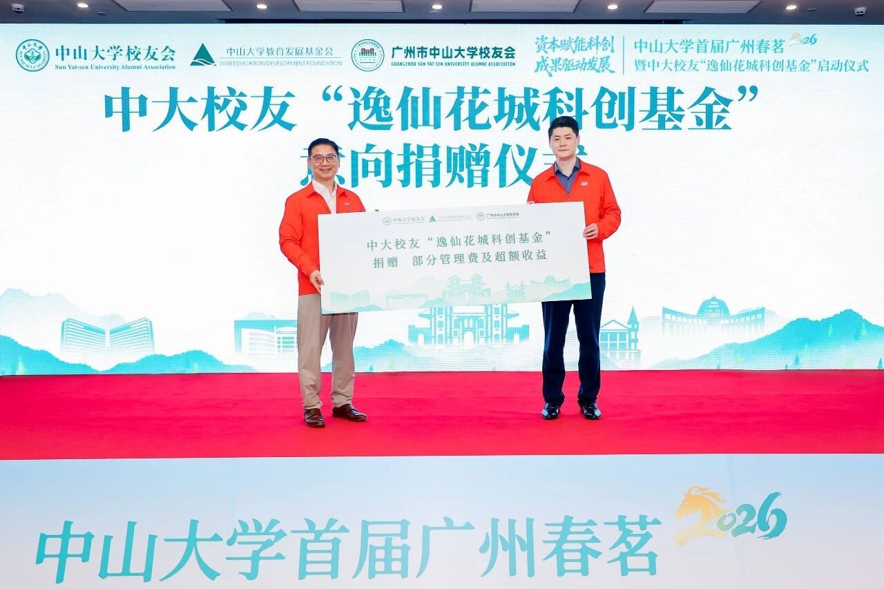 会上还举行了中大校友“逸仙花城科创基金”对中山大学教育发展基金会、广州市中山大学校友会的意向捐赠仪式。