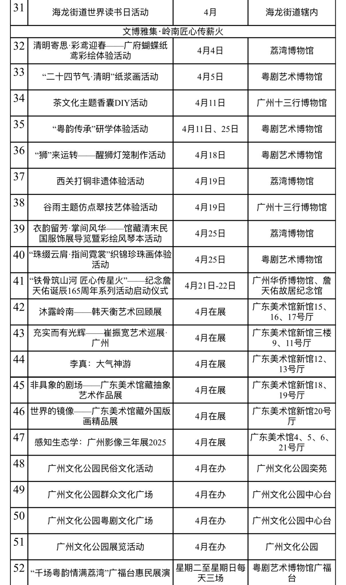 岁月铭记先驱,匠心赓续文脉。四月,荔湾深挖本土资源,依托文博场馆策划系列展览与非遗活动。在詹天佑诞辰165周年之际,以“铁骨筑山河 匠心传星火”为主题的系列活动将于4月21日启幕,通过主题展览再现詹天佑先生的赤子丹心,让报国精神与工匠精神薪火相传。此外,广东美术馆白鹅潭馆区、荔湾博物馆、广州十三行博物馆等场馆也将同步推出精品展览与非遗手作,期待广大市民游客走进展馆,在沉浸式互动中触摸千年商都的文脉芳华。